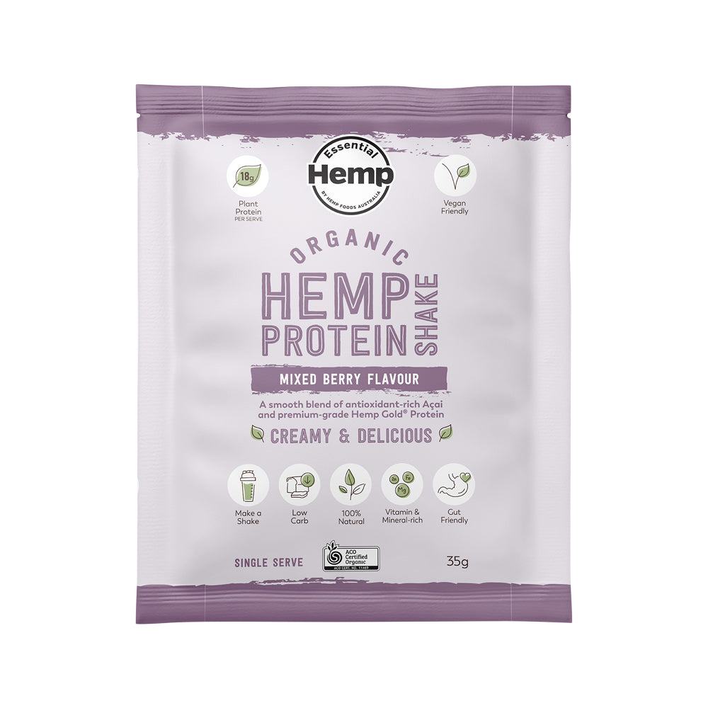 Hemp Foods Australia Organic Hemp Protein Shake Mixed Berry Sachet 35g x 7 Display