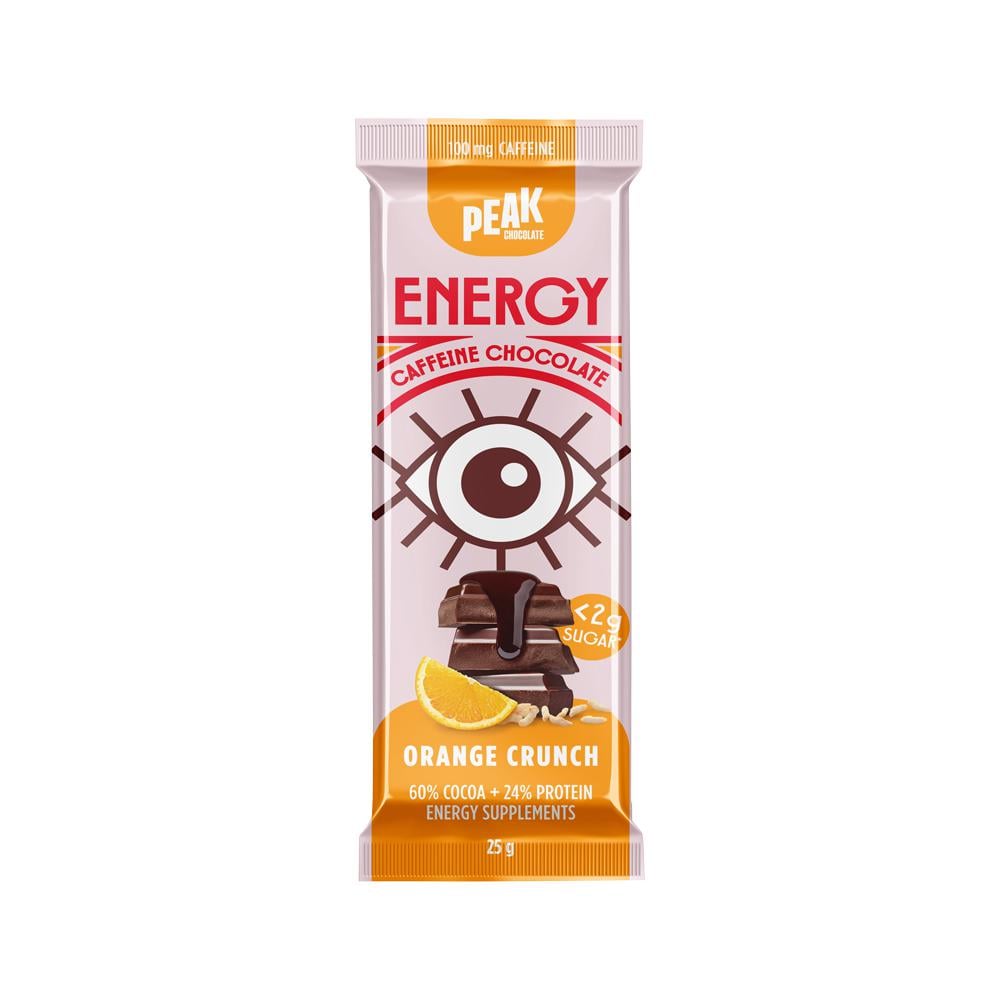 PEAK CHOCOLATE CAFFEINE CHOCOLATE BAR ENERGY ORANGE CRUNCH 25G X 14 DISPLAY