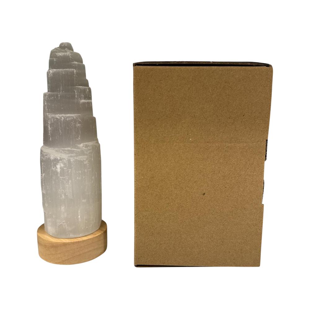 Illuminate your space with the Alternative Distribution Selenite Lamp Mini Mountain. Standing at 15cm tall, this stunning lamp features a captivating crystal design that radiates tranquility and warmth. The LED base enhances its beauty, making it a perfect addition to your home or office decor. Embrace the soothing energy of selenite and transform any room into a serene sanctuary.