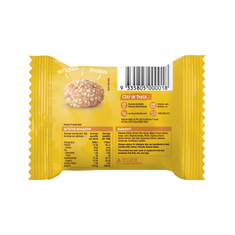 Introducing Bounce Protein Balls Peanut – the ultimate nut classic! Each 49g ball is packed with a satisfying 14g of protein, making it the perfect snack to curb those pesky hunger pangs.