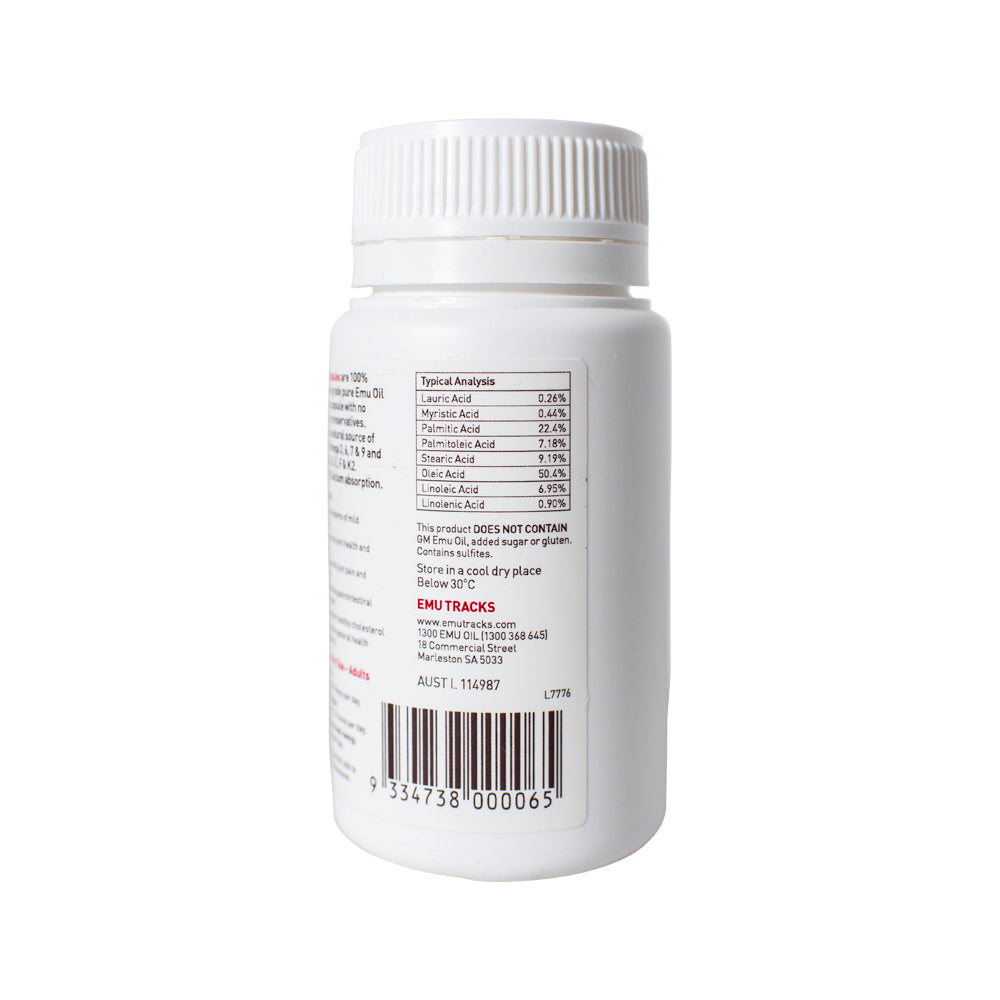 Experience the remarkable benefits of Emu Tracks Emu Oil Capsules. Crafted from 100% pure Emu Oil, these capsules are free from additives and preservatives, harnessing the power of natural ingredients to support your health.