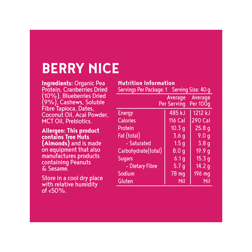 Introducing Kuranda Wholefood's Berry Nice Protein Balls, the perfect snack to fuel your day. Each 40g ball is packed with the vibrant flavors of dried blueberries and cranberries, making it a delicious low-carb, high-protein option.