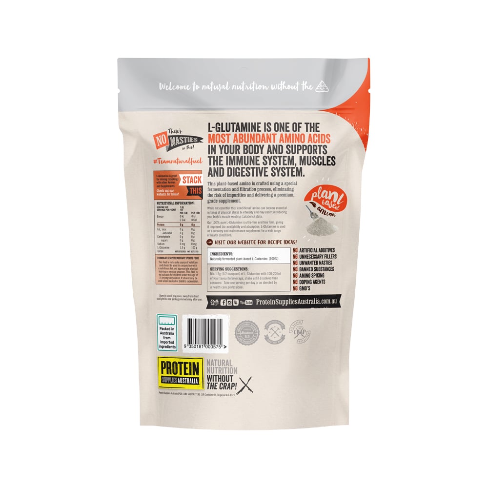 Enhance your training with Protein Supplies Australia L-Glutamine Pure 200g. As the most abundant amino acid in your muscles, L-Glutamine supports muscle development and maintenance, especially during intense workouts or stressful periods. This pharmaceutical-grade, vegan-friendly formula promotes muscle growth and fortifies your immune system.