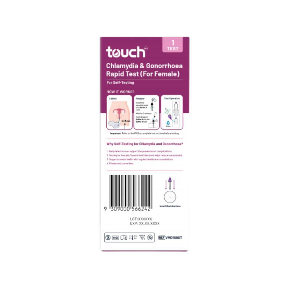 TOUCH BIO SELF TEST KIT - CHLAMYDIA GONORRHOEA RAPID TEST FEMALE x 1 TEST