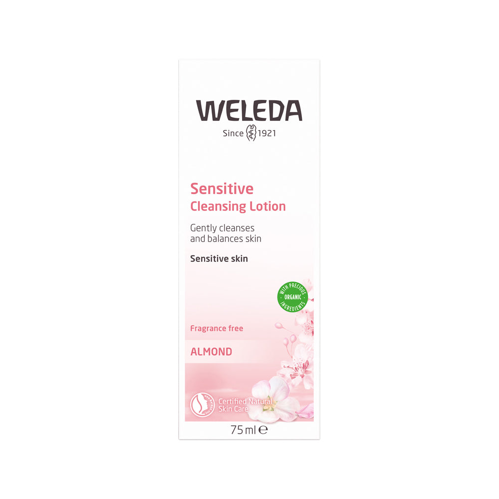 Discover the Weleda Sensitive Cleansing Lotion (Almond) in a convenient 75ml size, perfect for your sensitive skin-care routine. This ultra skin-compatible, light cleanser harnesses the nourishing powers of organic almond and mild plum kernel oil, closely mirroring your skin's own sebum.